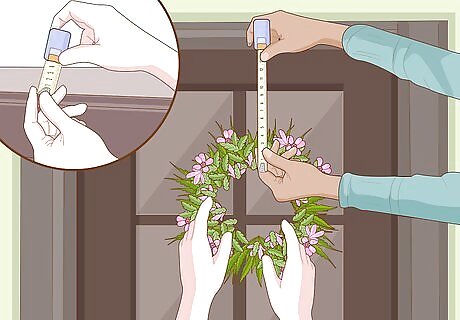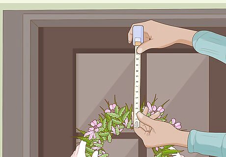 Measure from the inside edge of the wreath to the top of your door. Hold the wreath where you want to hang it on the front of the door. Use a measuring tape to measure from the inside top edge of the wreath to the top of the door. This will be easier if you have someone with an extra pair of hands to help you!