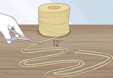 Cut a piece of twine that is as long as your measurement plus 12 in (30 cm). The extra 12 in (30 cm) will allow you to attach the twine to both the wreath and the hook on the other side of the door. Unravel a piece of twine that is the calculated length and cut it with scissors. You can use ribbon instead of twine for this method as well.