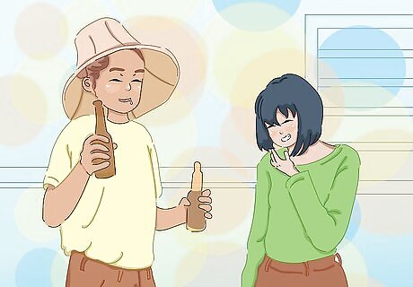Keep a drink in your hand if you must. Having something to sip on will keep your mind off of not having an drink. This will keep others from feeling self-conscious that they are too drunk while you are sober, and may allow them to open up to you. Also, you don’t want to be vulnerable to people who might want to offer you a drink. Whether it’s alcohol-free beer or just a soda, having your own drink to fall back on may reduce the likelihood that you resort to picking up an alcoholic beverage if you're overcoming an addiction.