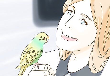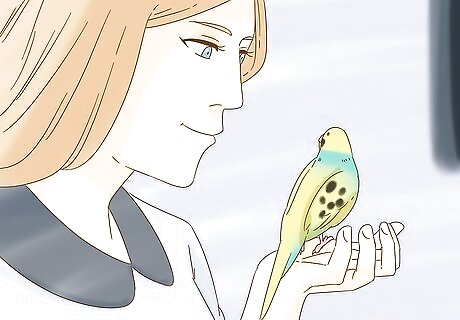 Handle and hold your bird frequently. Your bird will enjoy getting physical contact and spending time with you. If you handle your bird for a few minutes a day, you can build up trust and learn more about your bird’s preferences. Once your bird is comfortable in your hands, start with small activities like holding your fingers out as a rung on a ladder. Watching your bird progress through these small activities will be enjoyable for you, and building trust and familiarity will enable you to try more creative activities or full-fledged games later on.
