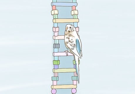 Rotate your bird’s toys or give it new ones to play with. If your bird has been playing with the same toys for a while, switch out the old toys for one or two new ones. Figuring out a new toy will stimulate and challenge your bird, which will provide plenty of entertainment for you as an observer. New toys can be pricey, but if you keep your bird’s toy collection on rotation there will never be a dull moment.