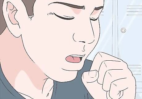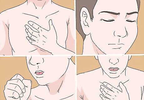 Cough regularly to clear secretions from your airways. Coughing is how your body gets mucus out of the lungs. You may feel the urge to cough now and then, and it’s important to cough when you do. However, even if you don’t feel like you have to cough, try coughing to see if you can bring anything up. Remind yourself to cough once per hour, such as by setting a reminder on your phone. Tip: If coughing doesn’t seem to help, try making yourself laugh by watching a funny video or reading a funny book. Laughing helps to force air into your lungs, which clears out the stale air. This may also shift some of the secretions in your lungs and make it easier to cough them up.