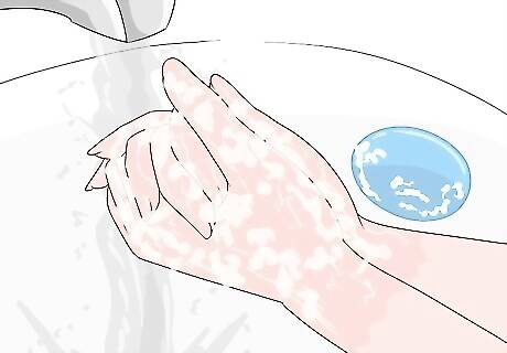 Wash your hands after using the bathroom or any time they’re dirty. Wash your hands after every time you use the bathroom or do something that gets your hands dirty, such as taking out the trash or changing a baby’s diaper. Hold your hands under warm, running water and then lather then with soap for 20 seconds. Rinse them thoroughly and pat them dry with a clean towel. Germs accumulate on your hands throughout the day and this can predispose you to respiratory illnesses, such as pneumonia and the common cold. Regular hand washing will help to keep your hands clean and it may also protect you from these illnesses.Tip: If you’re unable to wash your hands, rub 1 teaspoon (5 mL) of an alcohol-based hand sanitizer between them until it evaporates.