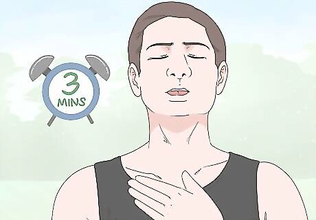 Stretch once per hour to make more room for your lungs. Reach up and stretch your body upwards as far as you comfortably can. Whether you are sitting or standing, stretching your body upwards elongates the area where your lungs are situated. You may also find it easier to breathe deeply after you stretch.