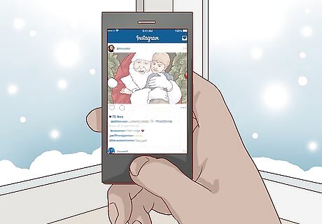 Find out where you can get your child’s picture made. Do some research into places in your area that offer photo opportunities with Santa. Your best bet will usually be a shopping mall, large department store or town square, though toy stores and hobby shops might also offer holiday photo services. Mark off a day on your calendar when you will have some time to take your child in. More popular locations will usually charge higher prices and be in more demand. If you want to avoid some of the hassle or expense, take a look at alternatives like smaller studios. Be prepared to spend a few hours negotiating traffic, waiting in line and getting the pictures taken.