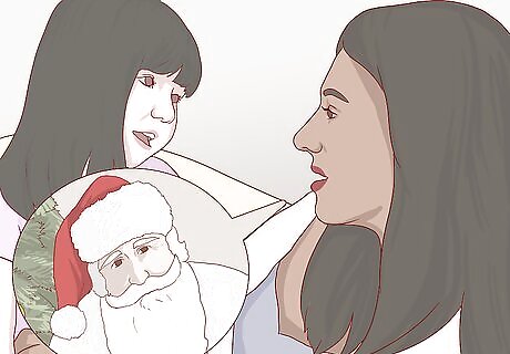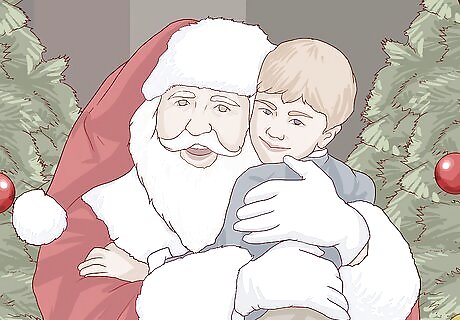 Teach them about Santa beforehand. When young children do not know who Santa is, they may become frightened at his appearance or the strangeness of the setting. If your son or daughter hasn’t already learned about the wonders of Santa Claus, give them a little primer on his backstory, what he does and why they should be excited. Once the time comes to meet him, they’ll barely be able to contain themselves, rather than turning into a tearful mess. Show your child an image of Santa so they’ll already know what he looks like. If possible, do a walk-by of a photo session going on at a mall or community center and give them a sneak peek of the proceedings. Be careful about making unnecessary reassurances about Santa. Saying things like “there’s nothing to be afraid of” may backfire and put ideas in their heads that weren’t there before.