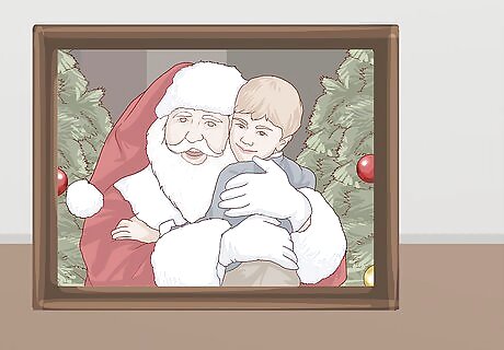 Have a portrait made. Most commercial photo services will offer to print and frame your child’s picture with Santa for a small charge. A framed portrait can go on the wall, in your bedroom or over the fireplace where the stockings are hung. They make great gifts, as well. Put the portrait out every year when you are decorating for the holidays. Add a custom message or greeting to commemorate the occasion, such as “Smith Family Christmas 2016.”