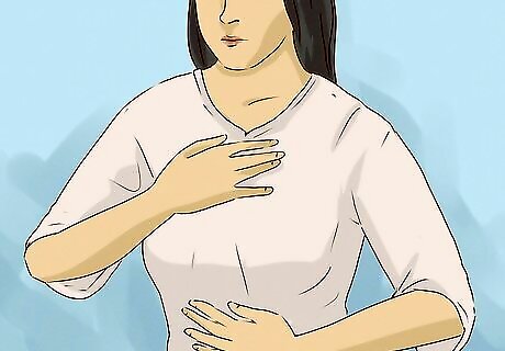 Take deep breaths with abdominal breathing. Place 1 hand over your stomach and 1 hand over your chest. Then, take a deep breath through your nose, drawing the air into your stomach. Make sure your stomach rises under your hand but your chest doesn’t. Then, exhale through your mouth. Repeat for 1-2 minutes. Do this exercise daily to help improve your breathing. Try using an incentive spirometer to help you open your lungs so they expand fully.