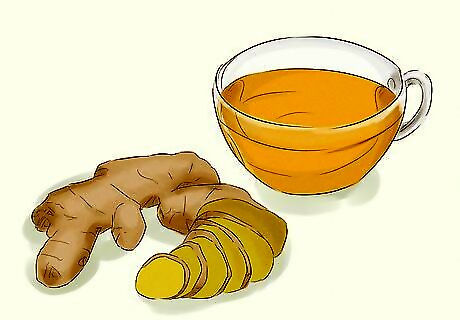Drink ginger tea to thin mucus and increase blood flow to your lungs. Buy bagged ginger tea or chop up fresh ginger to use for tea. Pour hot water over your tea bag and let it steep for 3 minutes. If you’re using fresh ginger, boil the ginger in water, then strain out the ginger pieces before you drink your tea. Sweeten your tea with honey if you don’t like the taste. You can also take ginger via a supplement if you prefer.