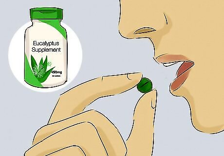 Use eucalyptus as a natural decongestant. Eucalyptus contains a chemical called eucalyptol that may support a healthy respiratory system. Take a eucalyptus supplement to help break up mucus. Alternatively, add a few drops of eucalyptus oil to your shower or bath to soothe your airways and thin out mucus. Look for other products that contain eucalyptus, like creams, soaps, and tea. This may make it easier for you to use eucalyptus to help your lungs.
