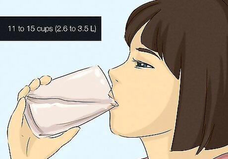 Drink 11 to 15 cups (2.6 to 3.5 L) of fluids daily to stay hydrated. Fluids help keep your lungs working properly and thin out mucus so it doesn’t build up in your lungs. Carry a water bottle with you so you can sip throughout the day. Additionally, eat foods like soup, fruit, and vegetables that contain a higher water content. This will help you keep your body hydrated. If you’re very active, increase your fluid intake. All fluids count toward your daily hydration goal, so you’re not limited to water.