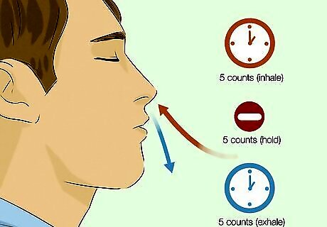 Do 5x5x5 breathing to increase your lung capacity. This breathing exercise helps you even out your inhalation and exhalation, which can improve your lung capacity. Start by counting to 5 as you inhale through your nose, then hold your breath for a 5 count. Finally, exhale through your nose as you count to 5. Repeat for 5 breaths. Do this exercise 3-4 times a day to help improve your breathing.