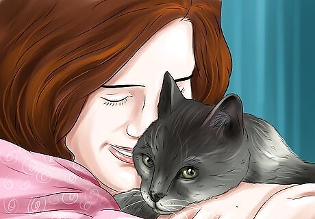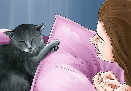 Keep the cat near you. If your cat gets really disoriented during the day, or especially at night, keep them near you. You can take the cat with you as move from room to room during the day. At night, take the cat into the bedroom and provide a comfortable place to sleep. If you put the cat in your room at night, make sure there is a litter box in there, too.