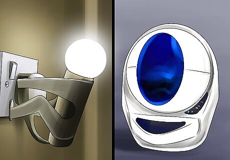 Leave on lights at night. Some cats may become disoriented in the dark. They may not know where they are, or become disoriented because everything is so quiet. To help your cat figure out where they are in the dark, quiet house, leave lights on or get some nightlights. Make sure to put nightlights near the litter box so your cat can easily find it. You may also want to put lights near the cat’s food and any cat furniture.