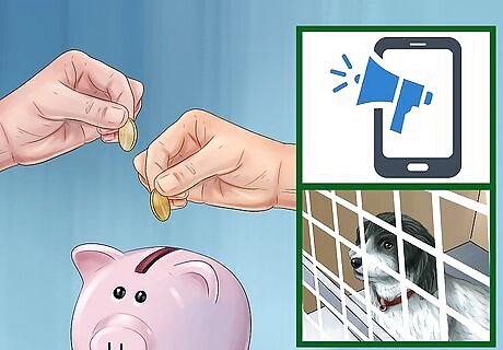 Raise money for the shelter. Shelters need money to buy food, medical care, and food for dogs. By raising money, you can help improve the quality of life for dogs in the shelter. It may also allow the shelter to care for more dogs without euthanizing them. You can host a bake sale, garage sale, or other small scale sale to raise money at your own home, school, or office. If you have a birthday or wedding coming up, you might consider asking guests to donate to your local shelter instead of buying you gifts. You can set up a crowd-funding page for your local shelter on a platform like Go Fund Me or Generosity.com to solicit donations.