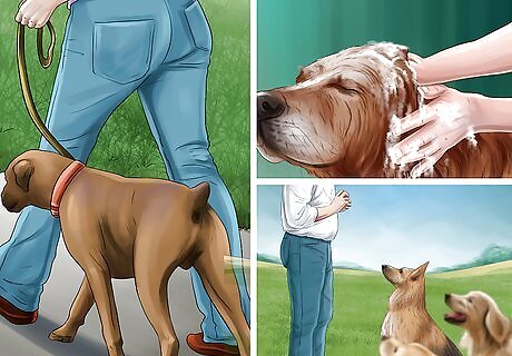 Spay or neuter your dogs. The best way to prevent overcrowding at shelters is to prevent more dogs from entering the system. Spaying or neutering your dog will prevent them from having puppies of their own. It may also help current homeless dogs find a home. If you do not have a dog, you can encourage others to spay or neuter their dogs. Point out the benefits of spaying and neutering. You might say, "spayed female dogs live longer" or "neutered male dogs won't wander from home as often."