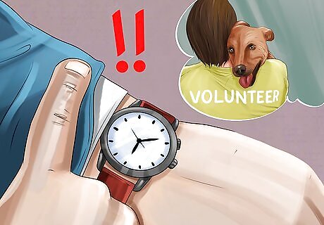 Commit to going at your scheduled time. Animal shelters often rely on their volunteers to function at full capacity. It is important that you follow through on your promises when you volunteer. Most shelters will assign you a time when you should come to volunteer. Make sure you’re able to be there when they need you. Some shelters may require you to commit to a length of time when you will volunteer. This period may be as long as year. You can work with the shelter to find a shift that fits your schedule. Be prepared to volunteer for between two and four hours per shift.