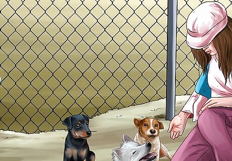 Foster a dog. When you foster a dog, you care for the dog in your home while the shelter looks for a potential owner. This is a temporary situation. By letting the dog into your home, you open up a spot for another dog at the shelter. Make sure that you can handle giving the dog away when they are adopted. You may have to housebreak the dog and train them. This will help the dog find a good home more quickly.