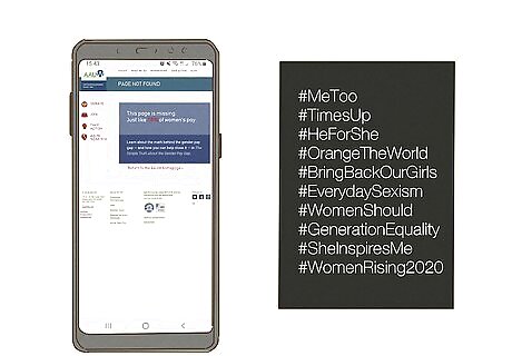 Check out social media movements to be inspired by others. It can be encouraging to get online and see all the people who are vocal about fighting for gender equality. Social media can give people a voice who might not otherwise be heard, and it can be a great place to get involved and learn about more concrete things you can do to help. Check out some of these hashtags: #MeToo #TimesUp #HeForShe #OrangeTheWorld #BringBackOurGirls #EverydaySexism #WomenShould #GenerationEquality #SheInspiresMe #WomenRising2020