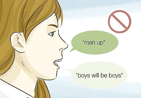 Remove stereotypes and double-standards from your language. Some parts of language are so ingrained, you may not even realize they are latently sexist. For example, phrases like “man up,” “like a girl/boy,” “boys will be boys,” “wears the pants,” and “you guys,” support male-dominated language. Think of ways you can swap out sexist language for non-sexist terms. For example, say “police officer” instead of “policeman.” It’s sexist to assume or expect someone to act or look a certain way because of their gender or sex, but it’s something we all do. Luckily, it’s something that can be overcome with attention and practice.