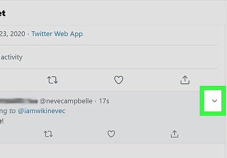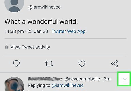 Tap on the V button near the reply. This will be located at the top-right corner of the tweet.