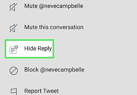 Navigate to your tweet and locate the reply which you want to hide. Note that you can only hide replies to your tweets.