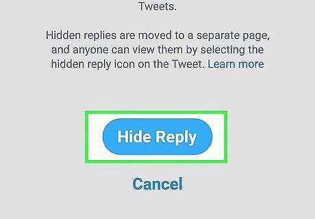 Select Hide reply from the options. If you're using this feature for the first time, a confirmation box will pop-up on your screen. Click on the Hide reply button to continue.