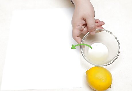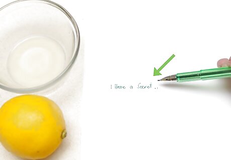 Make invisible lemon-juice ink. Fresh lemon juice goes onto paper clear, but turns dark when heated due to oxidation. Squeeze about half a lemon into a bowl and add a few drops of water. This will be your ink.