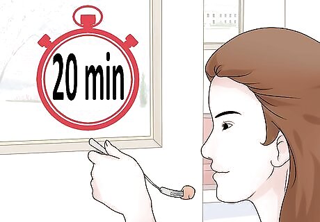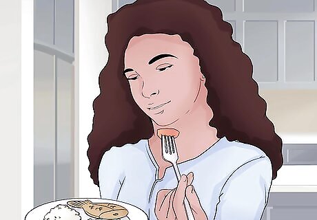 Practice mindful eating. Another key component to practicing healthy eating habits is being aware of how you eat, as well as what you eat. Many people tend to eat in front of the television or a distraction and do not pay attention to how much they are eating. Rather than eat in front of the television, try to sit down and focus on your food as you eat, taking your time to savor the food. This will allow you to swallow and digest each bite, and keep track of how much you are eating. To practice mindful eating, use a timer when you sit down to eat. Set the timer to 20 minutes and try to use all of the available time to eat one meal. You can try to eat with your non-dominant hand so you are forced to slow down when you eat and make some effort to lift and chew every bite. You can also reflect on what was required to produce the meal, such as the butcher who prepared the meat or the farmer who grew the vegetables and the grains.