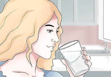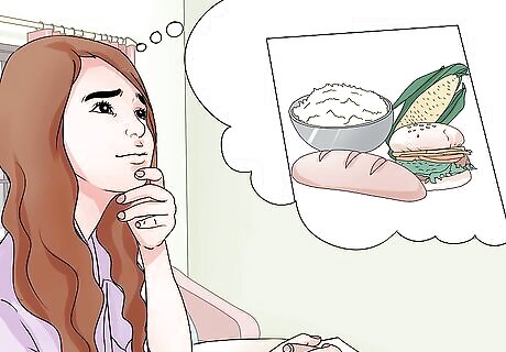 Drink lots of water. Drinking water will not only keep you healthy and hydrated, it can also act as an appetite suppressant. Sip lots of water throughout the day to prevent your stomach from becoming completely empty, leading to high hunger levels and the need to eat. By drinking lots of water, you can focus on staying hydrated, rather than on your diet. You should also drink a glass of water before you eat so your stomach feels more full and you can then eat smaller portions during your meal. This can help you to diet in a healthier way.