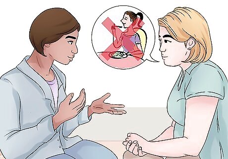 See your doctor if you think you may have an eating disorder. Hiding your diet by using exaggerated excuses, spitting food into napkins, or not eating with others can all be signs of an eating disorder like bulimia or anorexia. These eating disorders are often due to associating eating with a high level of distress and anxiety. This could be due to a fear of gaining weight or to other traumas that cause intense emotions and a need to control situations through food. Other symptoms of an eating disorder include: Not eating any food at all. Cutting your food into small pieces or stalling to finish your meals. Eating very quickly or very slowly and then purging the food by either vomiting or excessive laxative use. Eating without utensils or with utensils that are not appropriate for the meal. Exercising intensely after every meal. Obsessively counting calories and monitoring your eating habits. If you think you may be developing an eating disorder, you should reach out to close friends and family. You should also consider getting professional help from a doctor or a therapist that specializes in eating disorders.