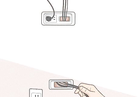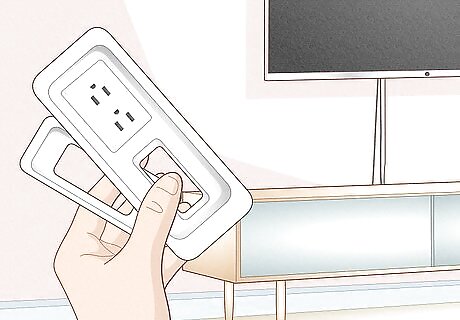Purchase an in-wall power kit to hide wires in the wall. These kits can be purchased online or at your local home improvement store and range from $40 - $100 and include all of the required tools. This option costs a little more money and takes a little more time, but will give you the cleanest, most aesthetically pleasing look. Some kits come pre-wired and make for even easier installation. Consider hiring an electrician to install a power outlet directly behind the TV so you don't have to worry about hiding the power cords.