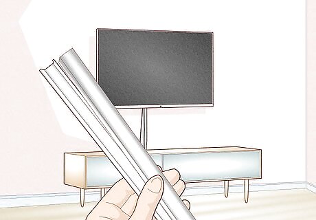 Measure the length of your visible wires and cut the cover if you need to. Measure from the back of your TV, down to the electrical outlet. If the cover is too long, you'll want to use a handsaw to trim it down to the right size. Placing the cover on a flat, sturdy surface and holding in place, grip the handsaw by the handle with your other hand and gently saw at a downward angle in smooth, even movements. Be sure to only apply pressure on the down-stroke.