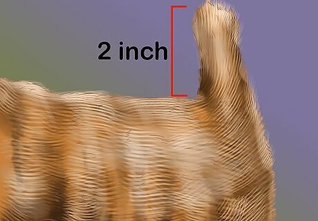 Look for a short tail. One of the defining characteristics of the pixiebob is its short tail. This, combined with the cat’s facial hair and color have led many people to suggest that the cat might be related to the bobcat. Pixiebob tails may be as short as 2 inches, but they can sometimes be much longer. Their tails may be kinked or even knotted.