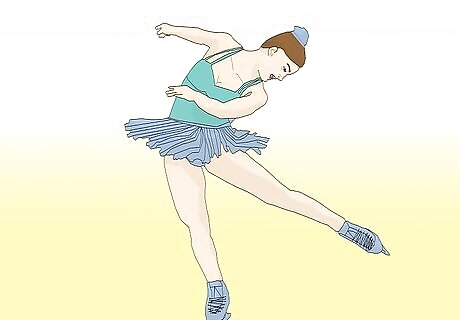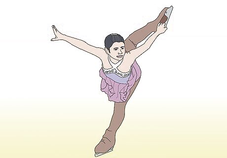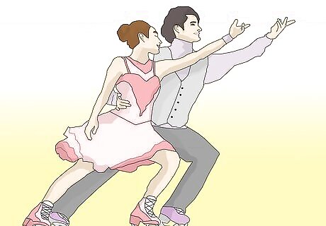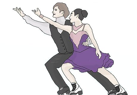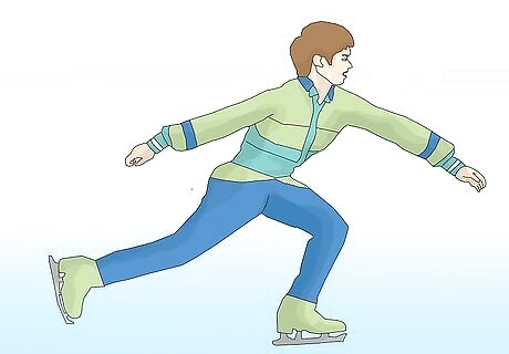 Imagine what you're going to do. Imagine 2 tracks on which 2 little cars are running. These tracks start close to each other and then diverge. We place the cars on the tracks near each other where the tracks are closest, but push the left hand car a little ahead of the right hand car. Now we apply a force between the cars, such that it pushes on the right hand car perpendicular to its track and on the left hand car about 20 degrees below perpendicular to its track. This force has to be dissipated somewhere. So the left hand car starts to move forward. If the angle between the cars must remain constant, the right hand car must also begin moving along its track. The force will continue for a while and then stop.Improve Your Ice Skating Technique Step 3Bullet1.jpg Now the separation between the cars is greater, but the left hand car has moved along its track nearly 3 times farther than the cars have separated. The force separated the cars one unit, while the left car moved forward approximately three units. This is the mechanical advantage of skating.Improve Your Ice Skating Technique Step 3Bullet2.jpg