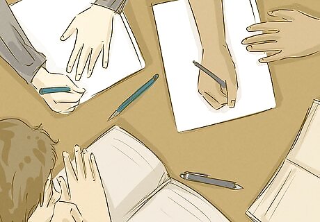 Set up an SAT study group. Get together with some of your classmates who are planning to take the SAT. Or, connect with a group of people via a SAT prep website. Then, start meeting to go over questions and practice tests. Come up with an agenda for each meeting, so that you'll cover all of the sections before your test date. Find a sponsor, such as a parent or a coach, who can keep everyone on task. This person can also write college application letters testifying to your study efforts.