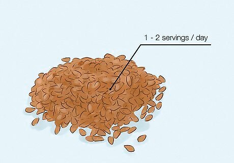 Get 1 to 2 servings of flaxseeds per day. Flaxseeds are an especially rich source of phytoestrogens, so aim for 1 to 2 servings daily. You can eat flaxseeds whole or ground. Sprinkle them on salads or mix them into your batter for baked goods, such as muffins and cookies. Other good sources of phytoestrogens from nuts and seeds include: Sesame seeds Sunflower seeds Pistachios Chestnuts