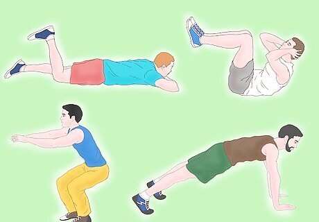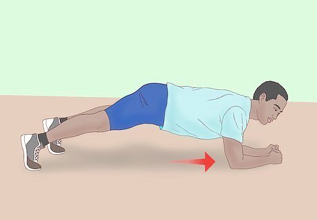 Target your core with planks. Planks are a static exercise that will target and fully engage your core. The exercise itself is simple but will still require you to use proper form to stay safe and get the most from it. Keep the following tips in mind when you are building core strength with the plank exercise: Get into a push-up position. For a plank however, you will be resting on your elbows instead of your hands. Keep your back as flat as you can. Engage your core muscles to keep your torso straight and your hips up. Hold the position until you are unable to continue doing so.