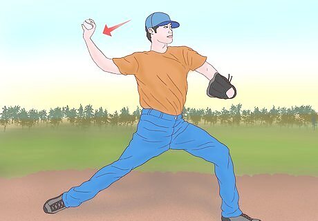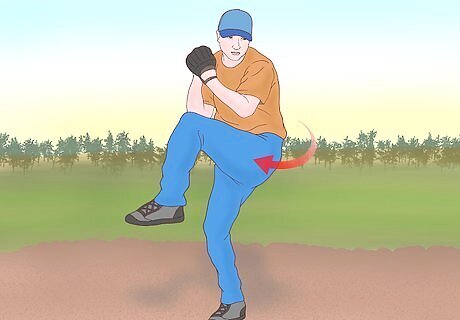 Rotate your torso and hips when throwing. When you are pitching you will be using your entire body. This movement will require you to fully commit to the motion and use your maximum effort to throw the ball as fast as you can. Make sure you are using the full motion and torso rotation to maximize the velocity of your pitches. Higher speeds of torso, hip and shoulder rotation will increase pitching velocity. Commit to improving and training your technique and mechanics.