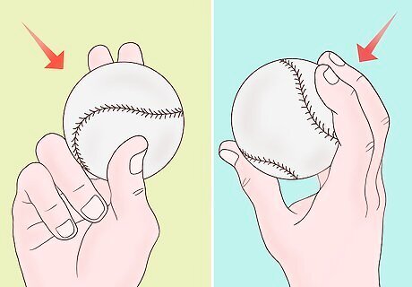 Use proper finger positioning. During a pitch you will need to fully utilize your motion to produce as much power behind the ball as possible. Part of keeping the full force behind the ball involves properly positioning your fingers during the pitch. Keep some of these tips in mind when pitching: Keep fingers behind the ball at all times. Avoid curling your hand or fingers in front of or to the side of the ball as you throw it. Hold the ball using your thumb, pointer, and index fingers. Your fingers should be placed across the horseshoe stitching, running parallel with it. This grip can also help with accuracy and consistency when throwing pitches.