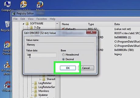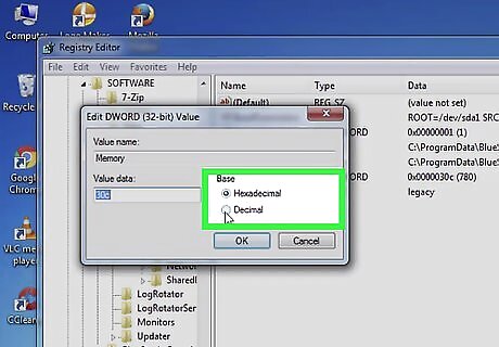 After opening it, change value to 'decimal', this will allow you to enter the value in MB, so a value of "2560" is 2.5GB of RAM*.