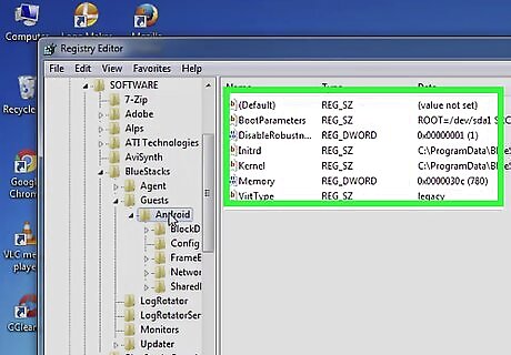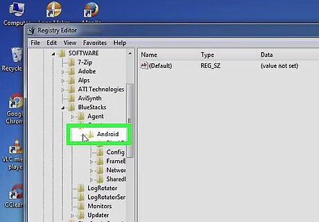 Select the BlueStacks container and then click through to -->Guests-->Android. Computer\HKEY_LOCAL_MACHINE\SOFTWARE\BlueStacks\Guests\Android