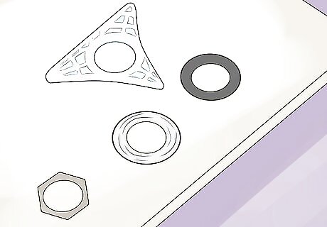 Set your counter plate, gasket, locking ring and hexagon nut parts underneath the sink so that you can install them easily. Loop them through the hoses in that order.