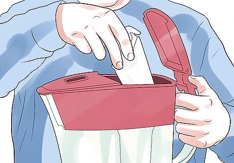 Remove the old filter and discard it. Wash your Brita pitcher with soap and water if you haven’t done so in the last few weeks.