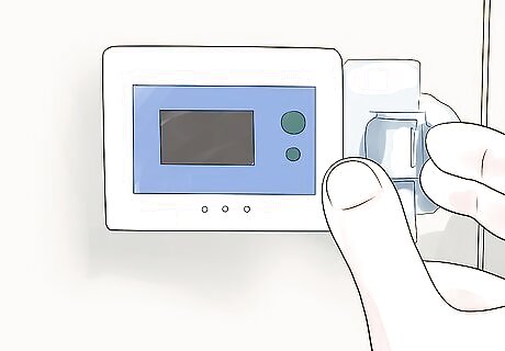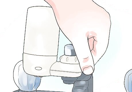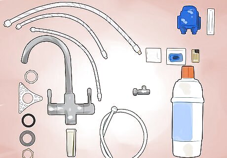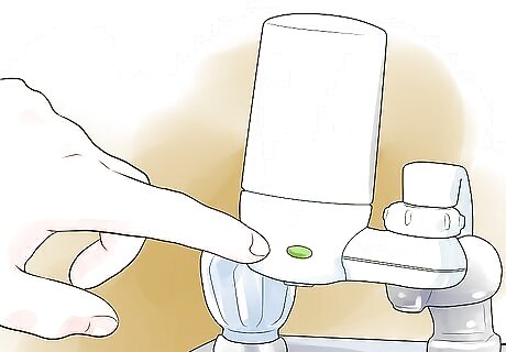 Purchase a Brita faucet filtration system. Your filtration system should come with two adaptors to fit most kitchen sinks. It is an exterior filter that can be easily removed and replaced when the filter is no longer effective.