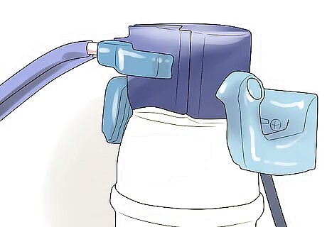 Insert the filter cartridge into the blue Brita filter device. The system is ready. Install the wall mount to hold your filter device in place so that it can be unscrewed and replaced when it is no longer effective.