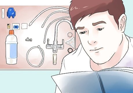 Unpack your three-way filter tap and dispenser. This is the longest installation process, because you are actually replacing your sink tap with a Brita brand tap and hoses.