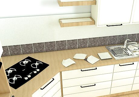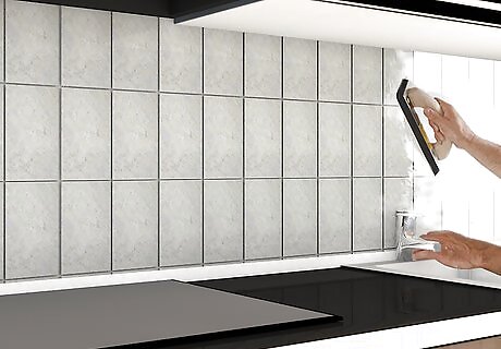 Clean your walls. The sticky backings of your tiles can’t adhere to walls if they are dusty or greasy. Use a damp rag to completely wipe down walls, and then let them dry completely.