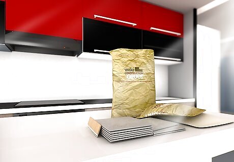 Get all of your supplies. Installing a traditional tile backsplash in your kitchen requires several different items. Make sure you are fully prepared before starting your project. The materials you need to have prepared before you begin include your tile, tile adhesive, and grout. Make sure you have the necessary tools, including a notched trowel, tape measure, sponge, level, utility knife, and a tile cutter. You may need spacers for tiles that are not attached together in sections. You may want to use something to cover your countertops during this process to keep them clean.