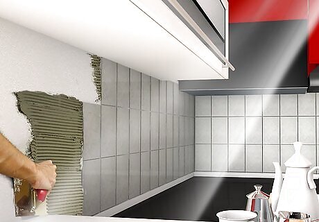 Clean your walls. In order for the tile adhesive to stick the walls, they must be free of any dust or grease. Wipe them down with a damp rag, and give enough time for them to completely dry.